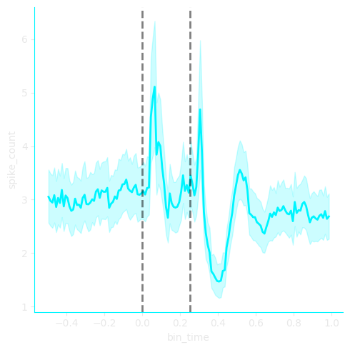 "analysis_window_start"column and merge the data using the stimulus onsets. However, then we would lose the spikes that occur right before the onset which we need to compute the baseline. ↩︎ -